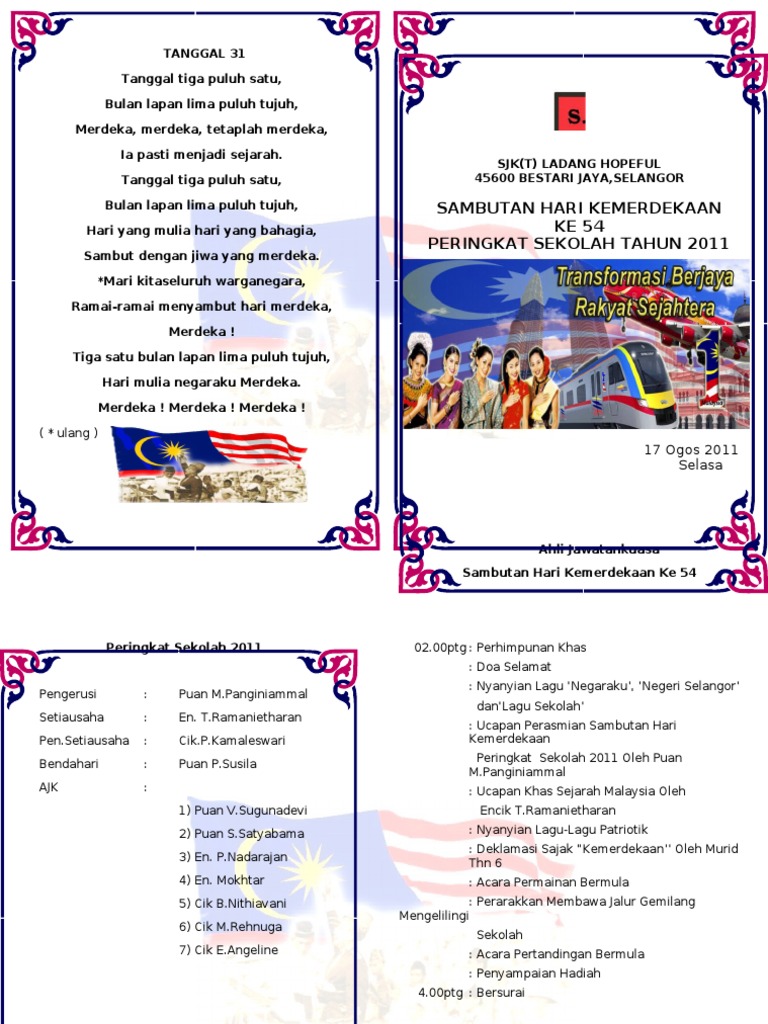 Ajk Sambutan Hari Kemerdekaan Peringkat Sekolah