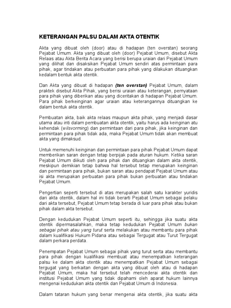 Keterangan Palsu Dalam Akta Otentik