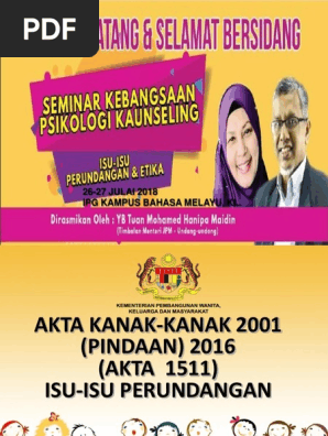 Pdf Akta Kanak Kanak Pindaan 2016 Peningkatan Penalti