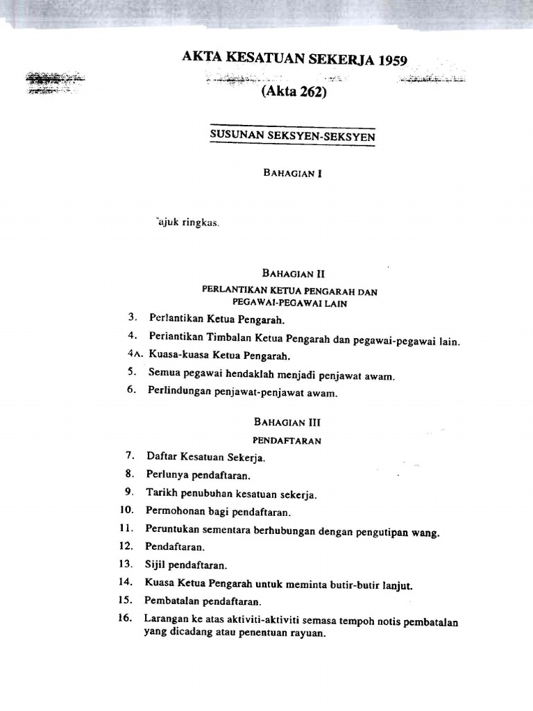 Akta 262 Akta Kesatuan Sekerja 1959 Pdf