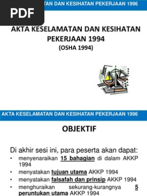 Terkandung Dalam Akta Keselamatan Dan Kesihatan Pekerjaan 1994 Akta Kilang Dan Jentera 1967 Dan Keperluan Pdf Document