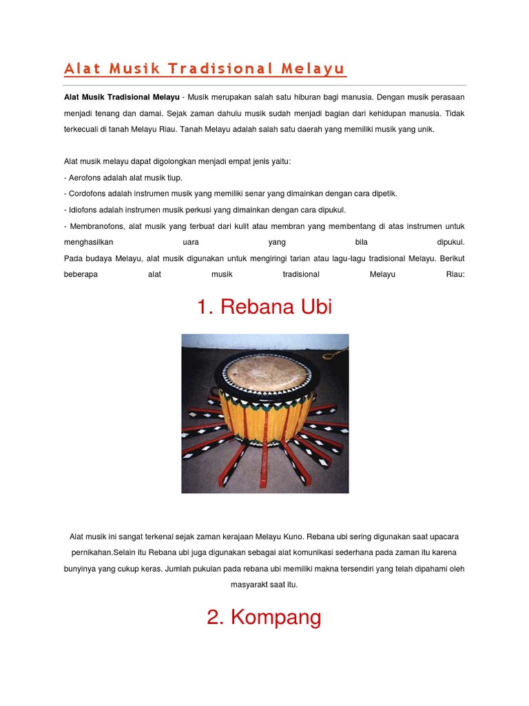 10 Alat Musik Tradisional Melayu Riau Gambar Dan Keterangannya