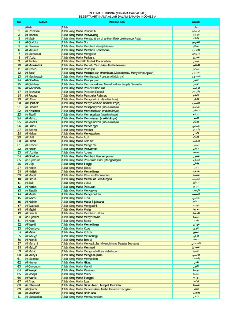 99 Asmaul Husna Nadhom Doa Asmaul Husna Download