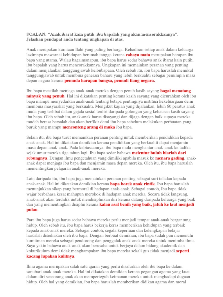 Ke Arah Mencari Redhanya Anak Ibarat Kain Putih Ibu Bapa Yang Mencorakkan Nya Baik Dan Buruk