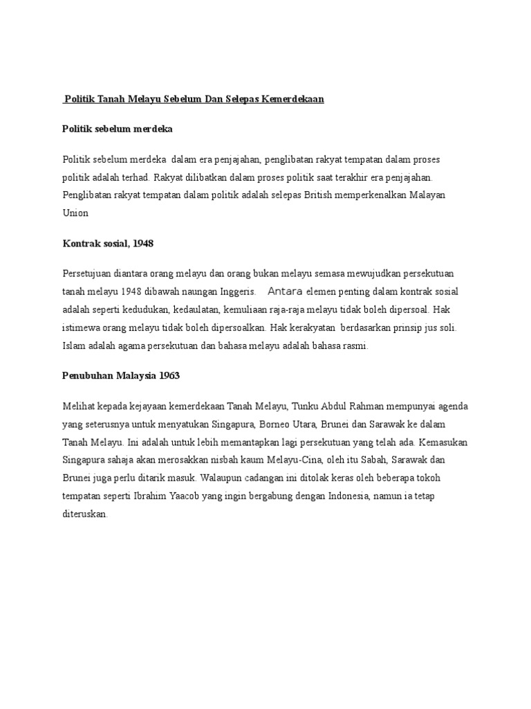 Politik Tanah Melayu Sebelum Dan Selepas Kemerdekaan Politik Sebelum Merdeka