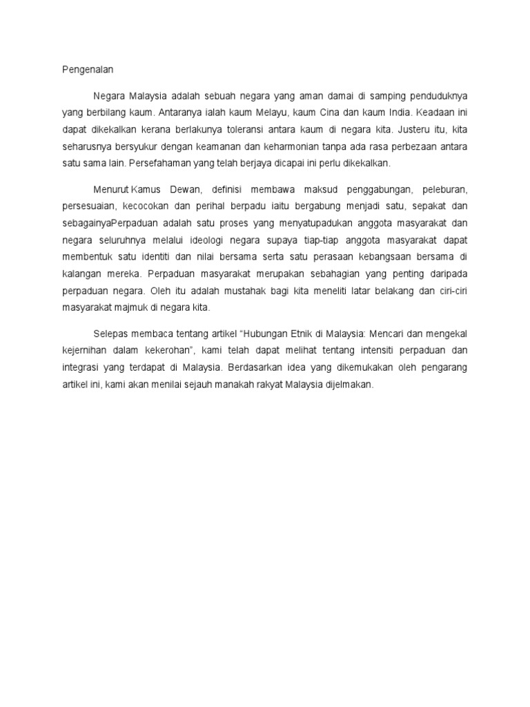 Contoh Artikel Contoh Ulasan Artikel Hubungan Etnik