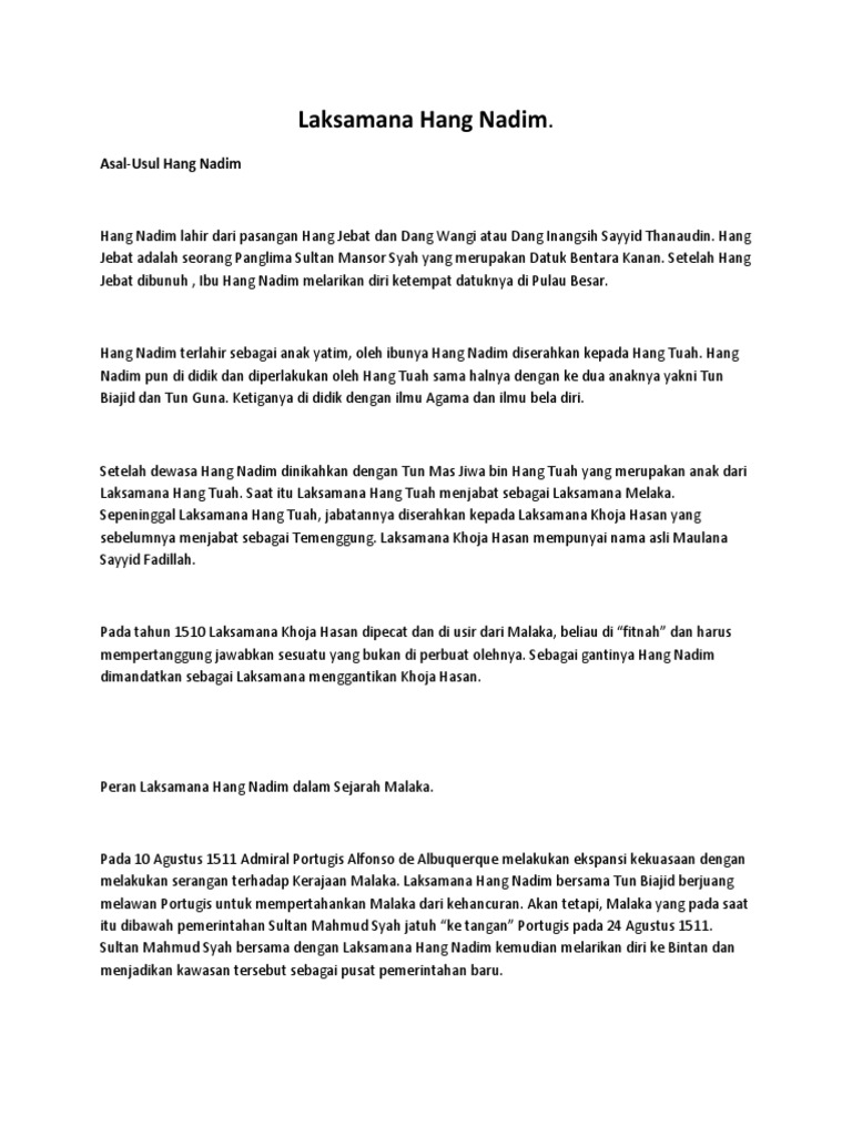 Sejarah Hang Tuah Hulubalang Melayu Sejarah Hang Tuah