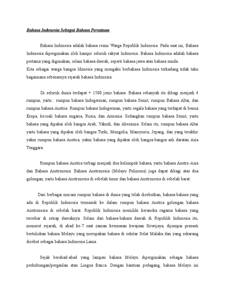 Bahasa Indonesia Sebagai Bahasa Persatuan