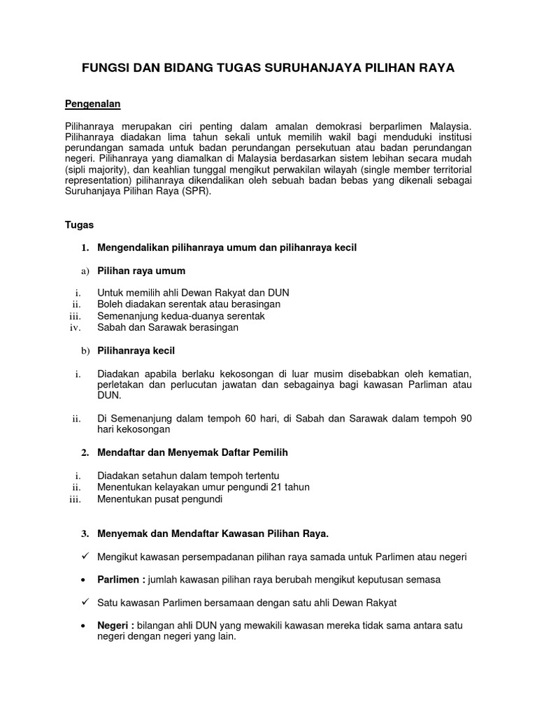 Huraikan Bidang Tugas Suruhanjaya Pilihan Raya