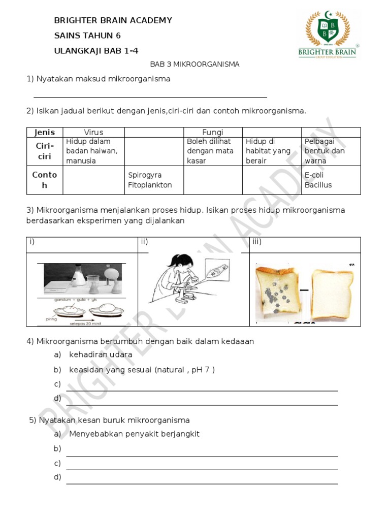 Brighter Brain Academy Sains Tahun 6 Ulangkaji Bab 1 4