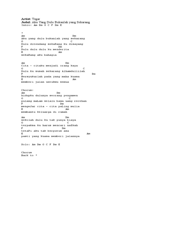 Tegar Aku Aku Yang Dulu Bukanlah Yang Sekarang Chords Chordify