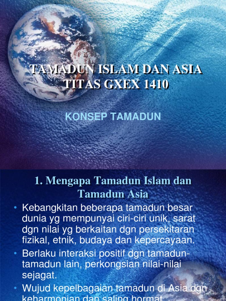 Ciri ciri tamadun sejagat. Ciri tamadun awal dunia ialah mempunyai petempatan kekal penduduk nomad mula hidup menetap di kawasan lembah sungai yang subur. Bahkan ciri ciri tamadun islam lebih luas daripada yang dinyatakan. Tamadun merujuk kepada tergambarnya sesuatu masyarakat pada zaman tersebut dengan kemanjuan kebendaan jesteru itu apakah ciri ciri yang boleh dikaitkan dengan tamadun. Ustaz abd aziz bin harjin.