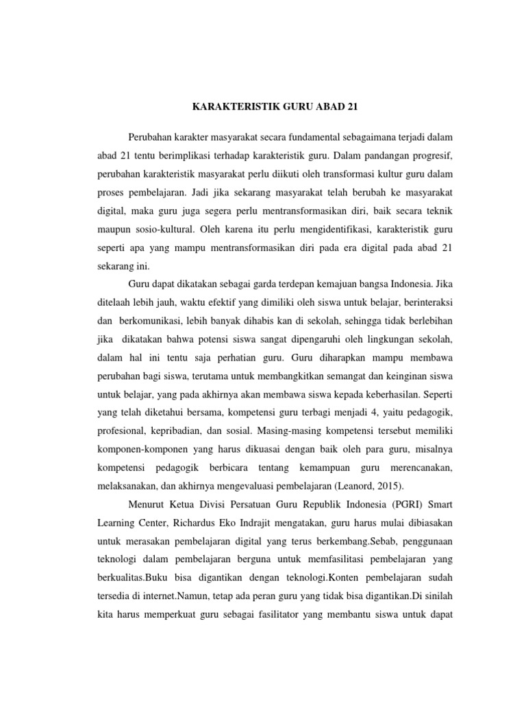 Doc Kegiatan Belajar 1 Karakteristik Guru Dan Siswa Abad 21 Dew Swan Academia Edu