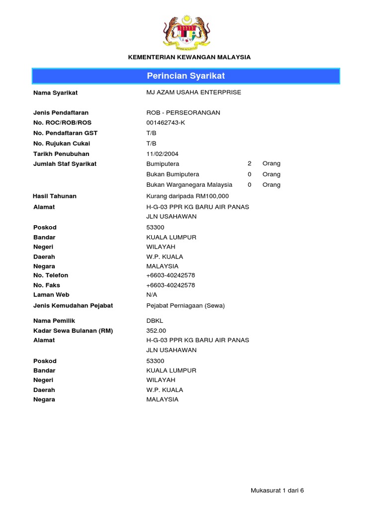 Permohonan Pembaharuan Muka Surat Firma Dengan Mof Secara Online Sama Ada Masih Sah Laku Akan