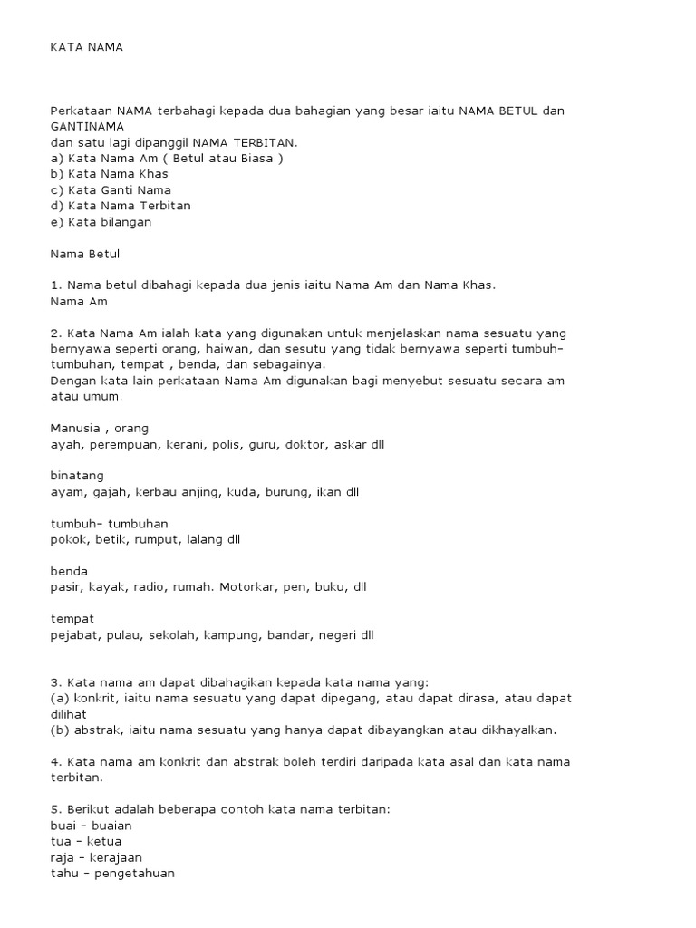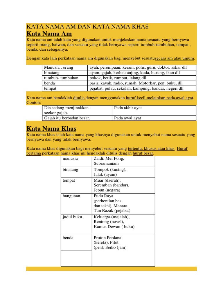 Contoh Kata Nama Am Dan Kata Nama Khas Materi Pelajaran 1