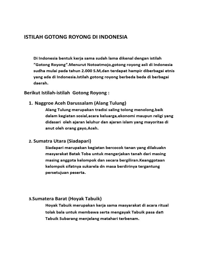 Istilah Gotong Royong Di Berbagai Daerah Opini Id