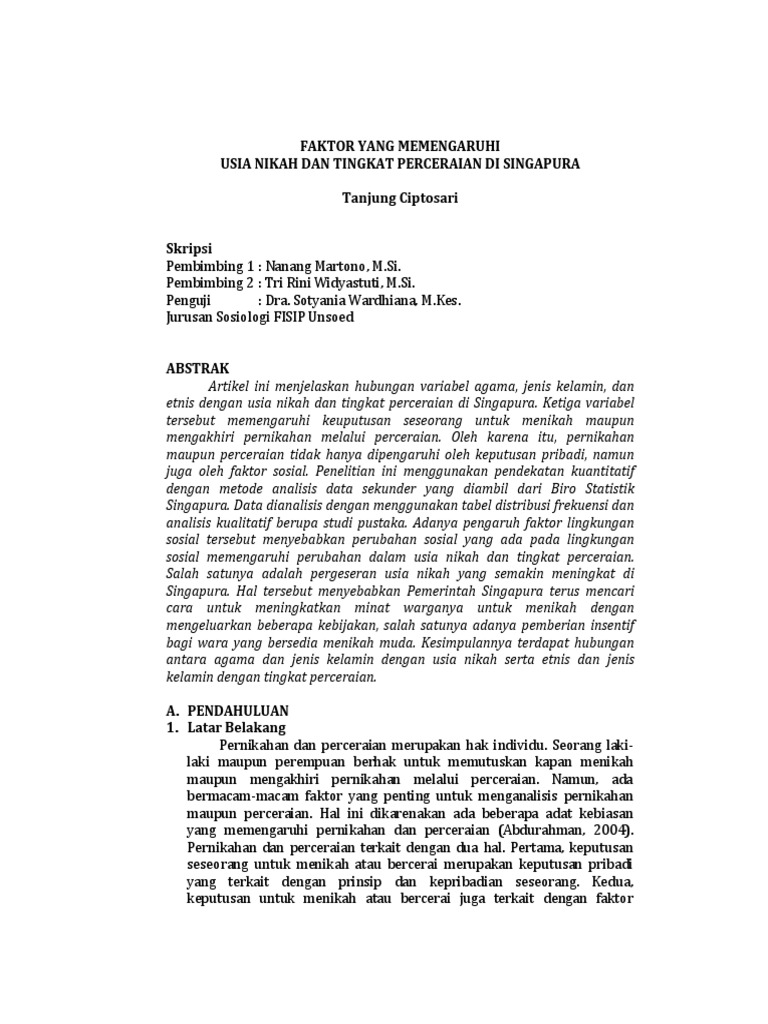 Faktor Yang Memengaruhi Usia Nikah Dan Tingkat Perceraian Di Singapura Pdf